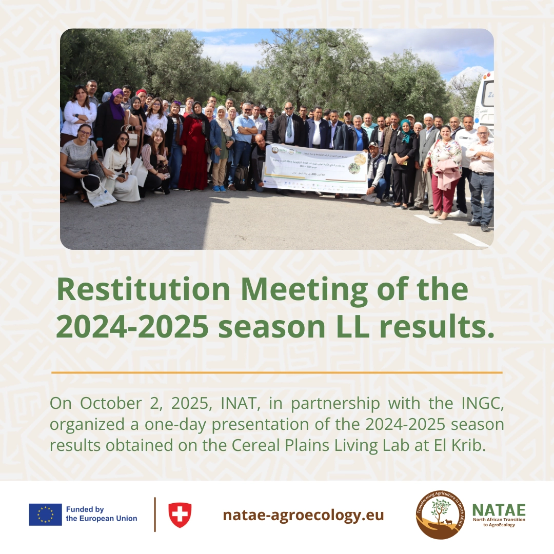 On October 2, 2025, INAT, in partnership with the INGC, organized a one-day presentation of the 2024-2025 season results obtained on the Cereal Plains Living Lab at El Krib.