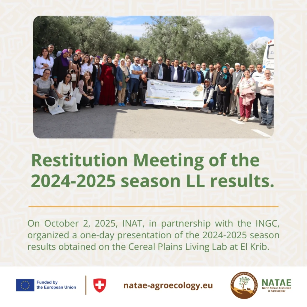 Le 2 octobre 2025, l'INAT, en partenariat avec l'INGC, a organisé une journée de présentation des résultats de la campagne 2024-2025 obtenus sur le Living Lab des plaines céréalières à El Krib.